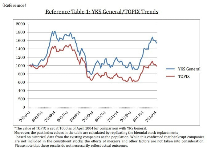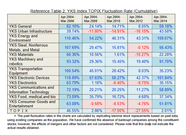 Now, based on the YKS Classification, we have developed the "YKS Index," which is the first in the world to demonstrate the growth potential of Japan's technology-based industries and the average stock price movements of technology high-growth stocks. Starting from May 2014, it will be published on a monthly basis.