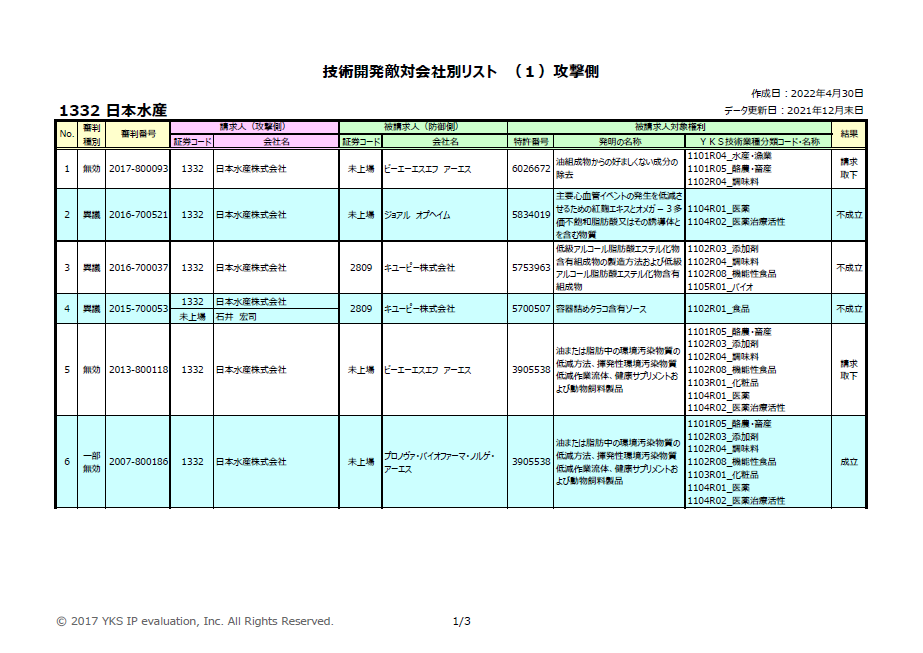 - YKS STORE "YKS Patent Strength Information" Company-specific Contents
