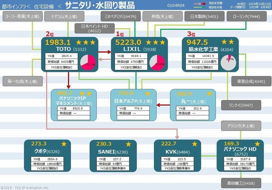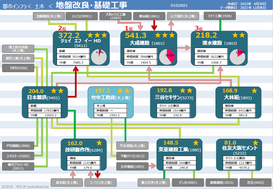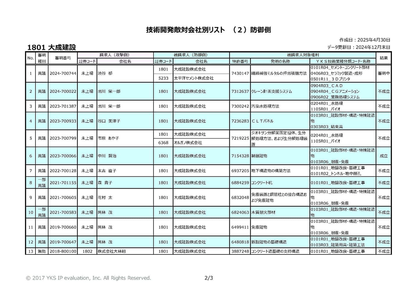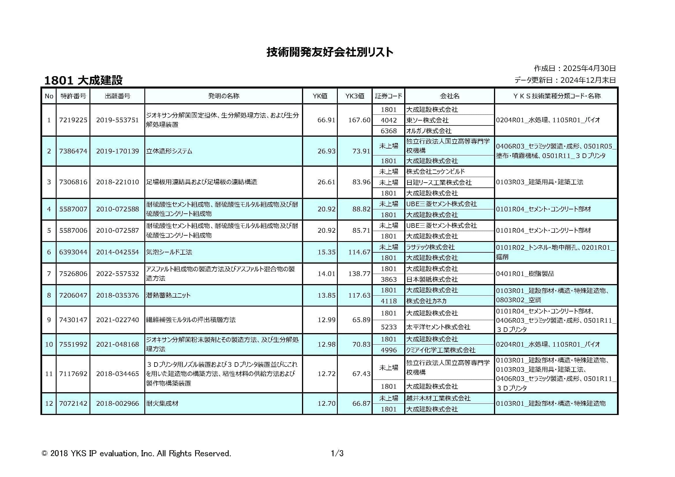 We have compiled a list of shared patents for approximately 300 top companies based on the patent competitiveness indicator "YK Value." The list includes up to 50 patents with high YK Values.