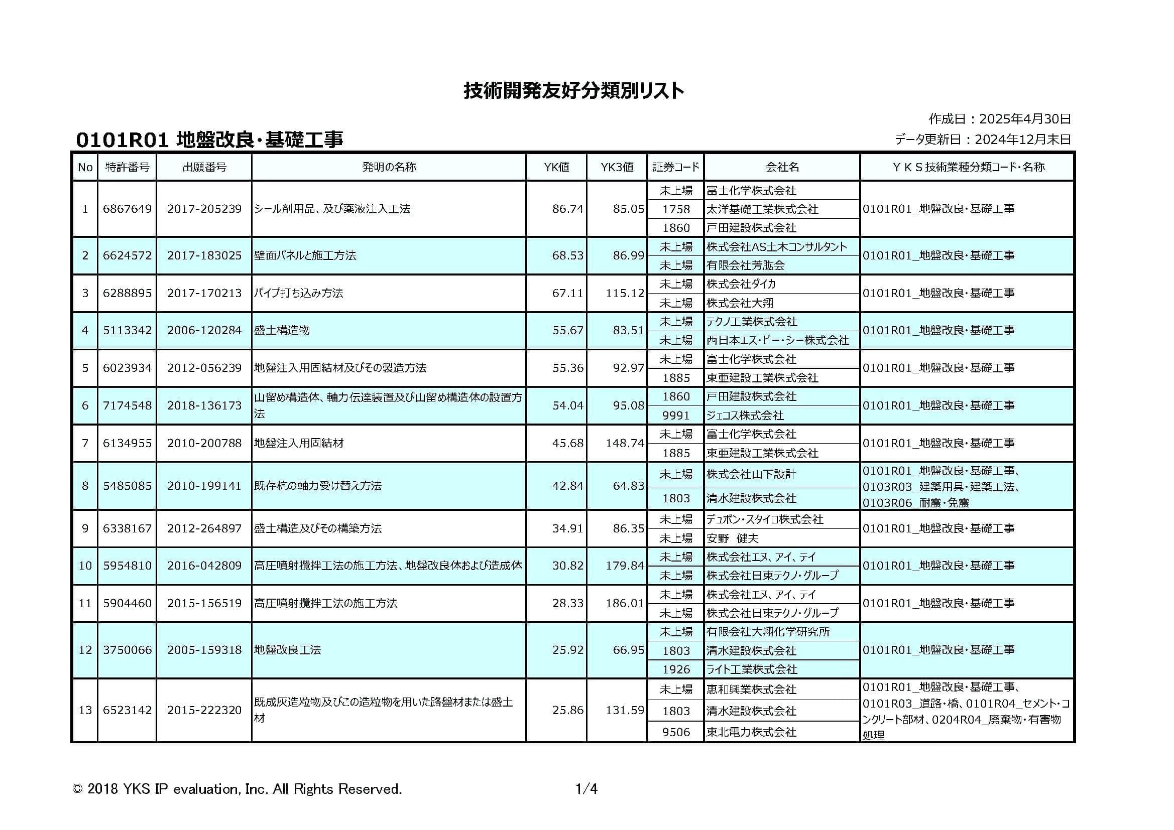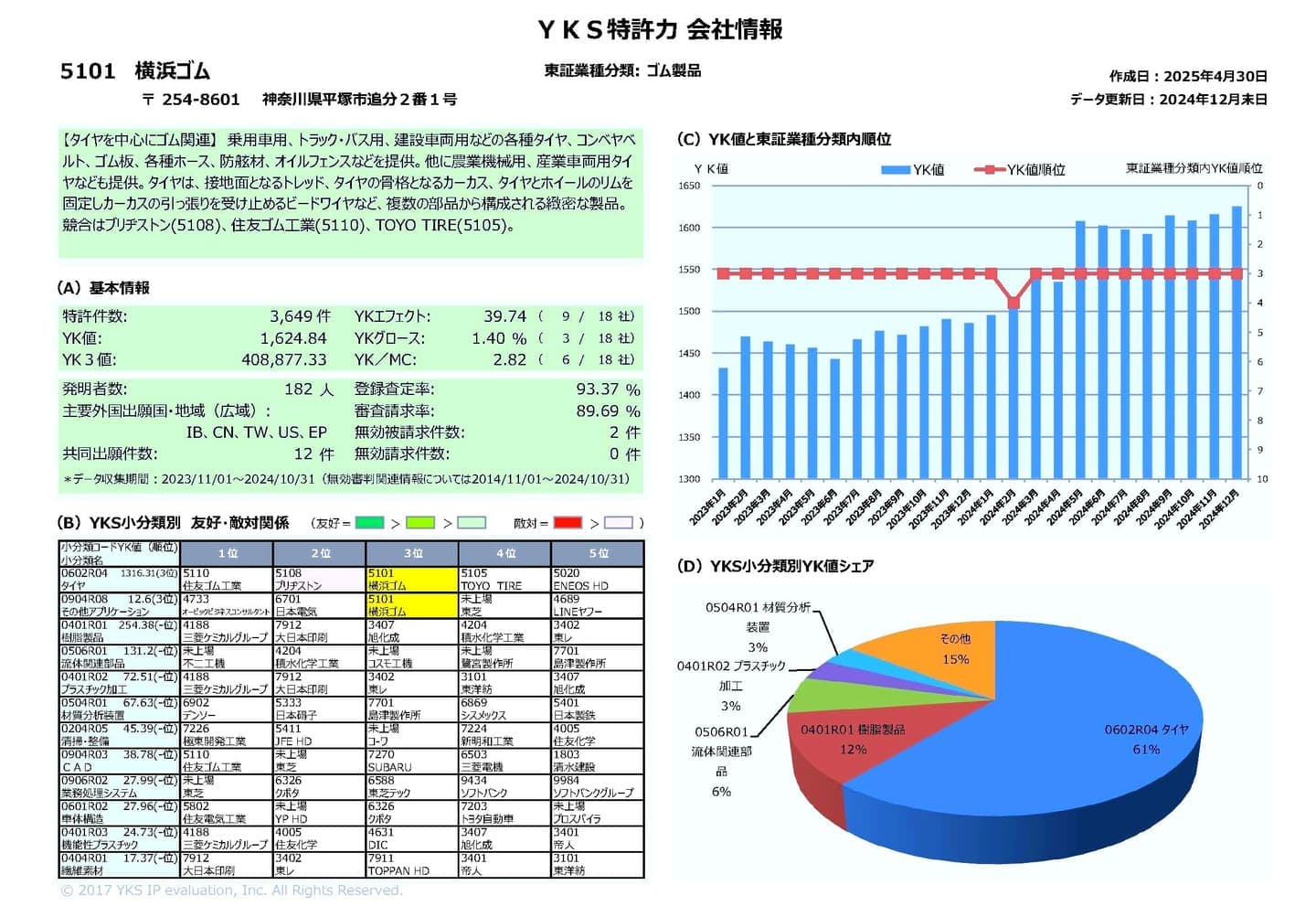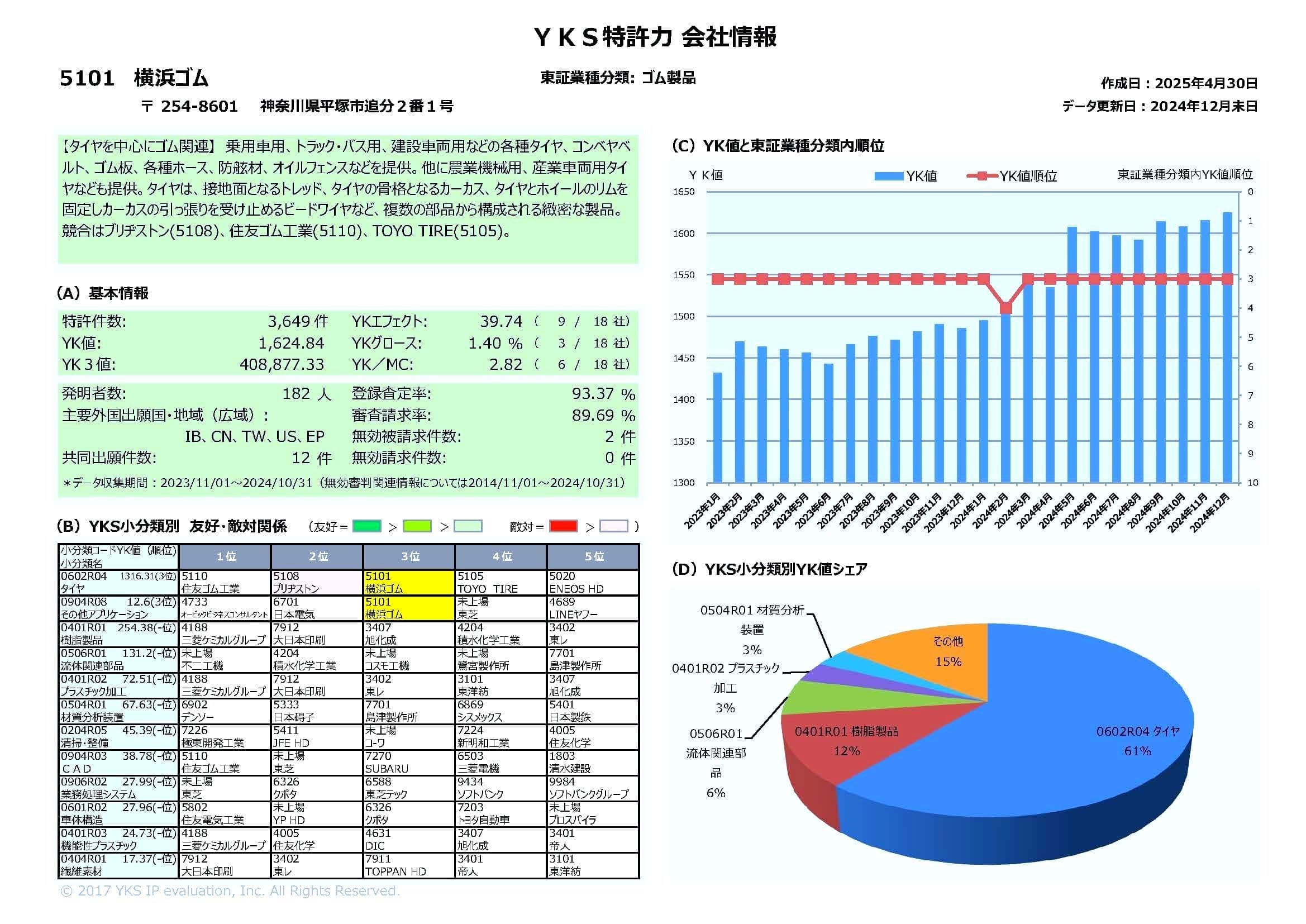 Ranking of companies based on their patent competitiveness indicator "YK Value" for each YKS Technical Industry Classification. It also includes rankings of companies based on the rate of increase or decrease in YK Value.