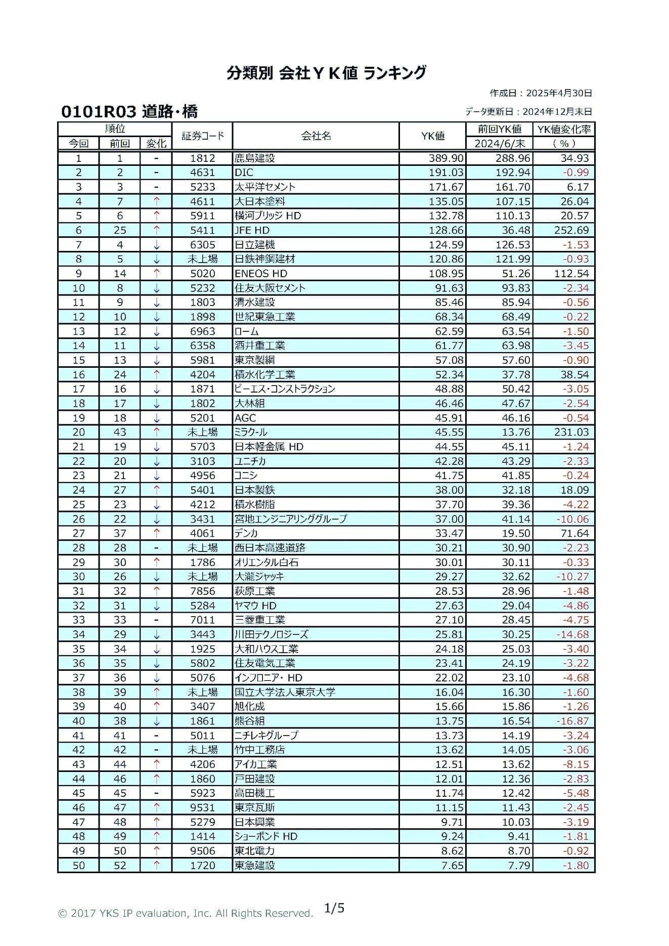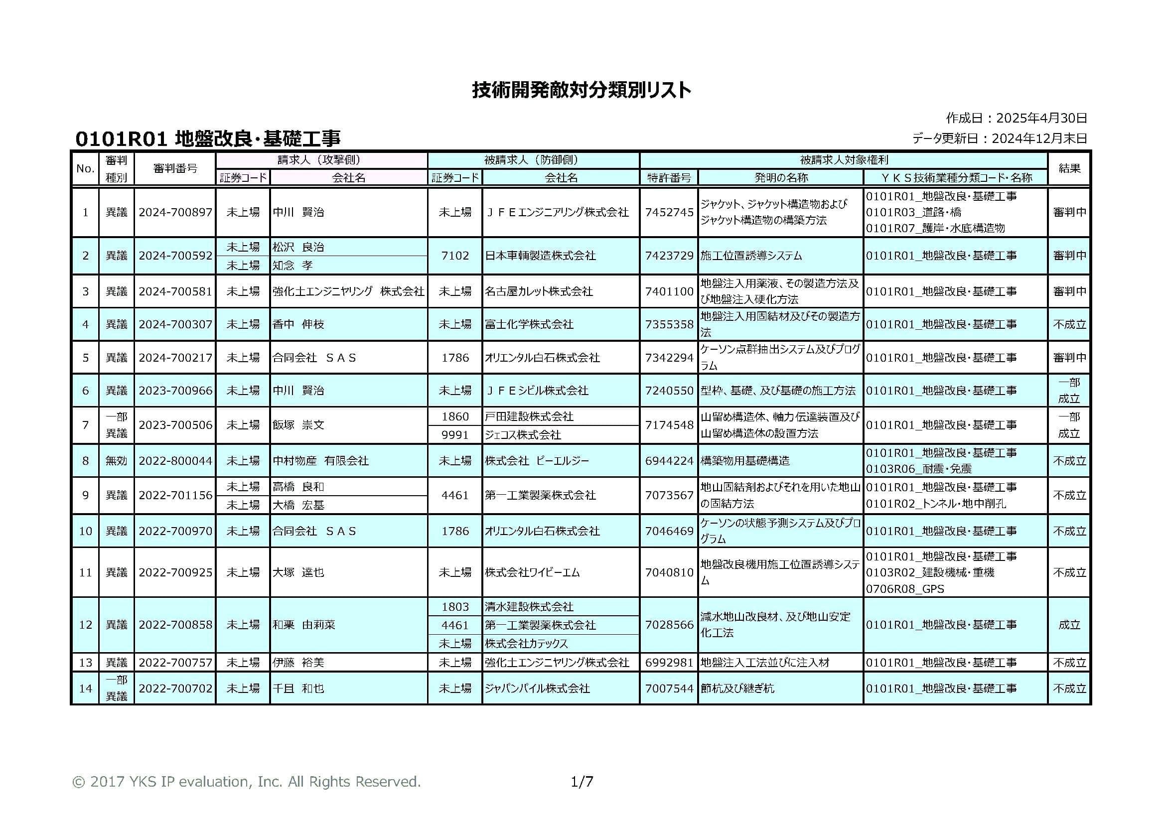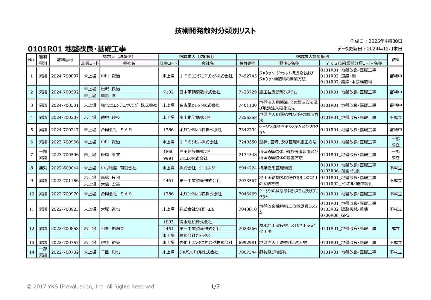 Ranking of companies based on their patent competitiveness indicator "YK Value" for each YKS Technical Industry Classification. It also includes rankings of companies based on the rate of increase or decrease in YK Value.