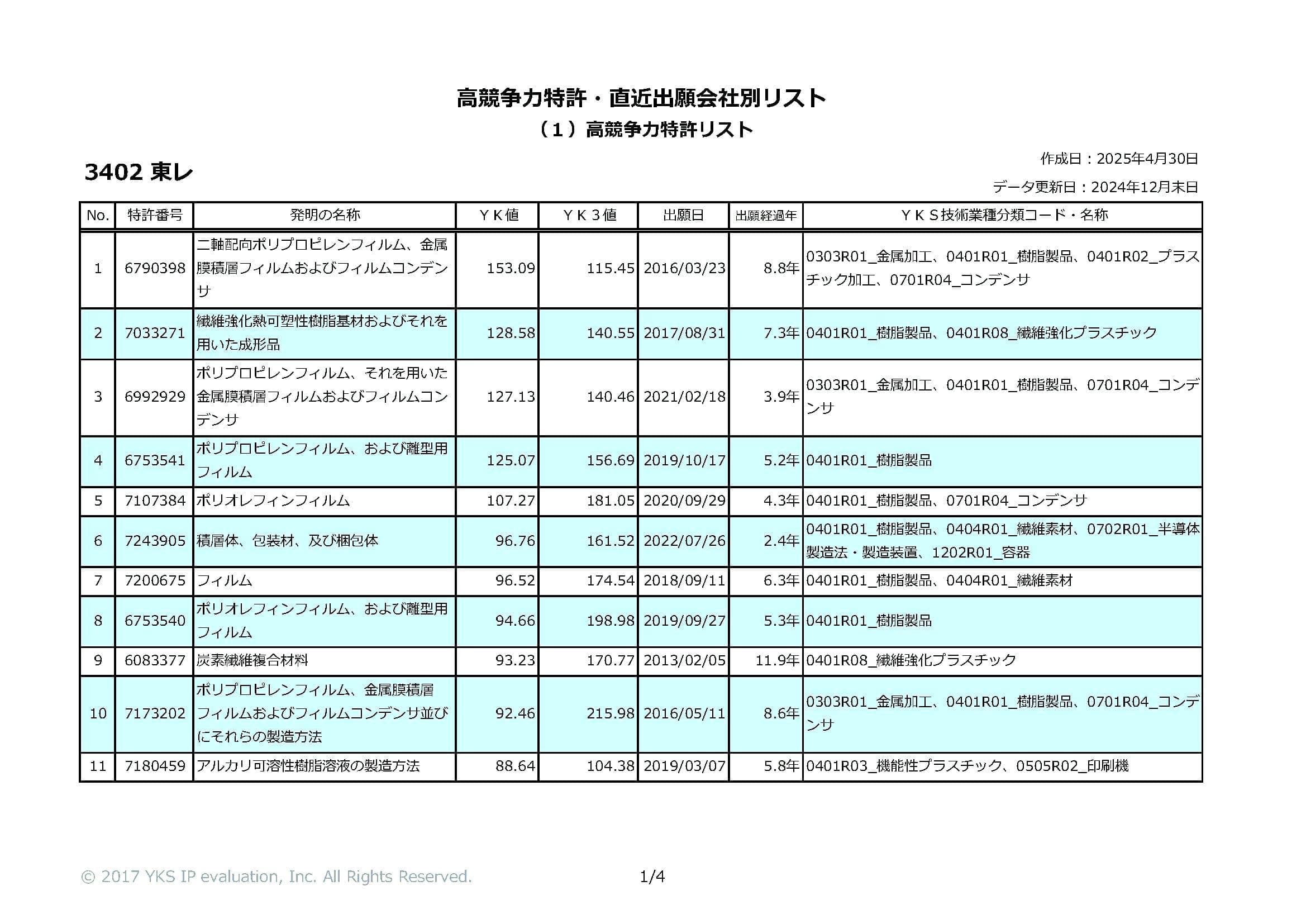 We have compiled a list of highly competitive patents from approximately 300 top companies based on the patent competitiveness indicator "YK Value." The list also includes a compilation of recently filed patents.